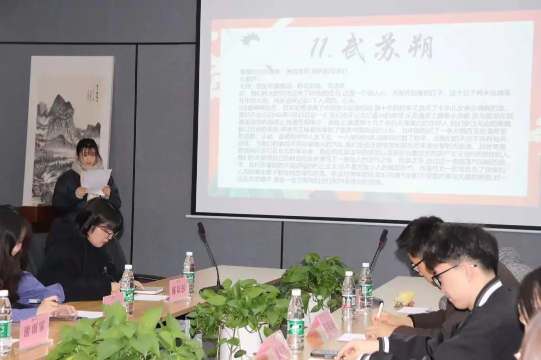 四号选手刘胤均以风趣幽默的言语介绍了落落大方的自己,活跃了现场的气氛,评委及观众们的脸上无不洋溢着欢乐的笑容。七号选手毛毛翊洋为我们带来朗诵《少年中国说》,她读到“少年强则国强”,不仅赞美了祖国,还为我们展示了中国少年的自信与光彩。十一号选手武苏朔为我们带来朗诵《我爱这片土地》“为什么我的眼里常含泪水,因为我对这土地爱的深沉”她用慷慨激昂的朗诵表达了对祖国的热爱。
