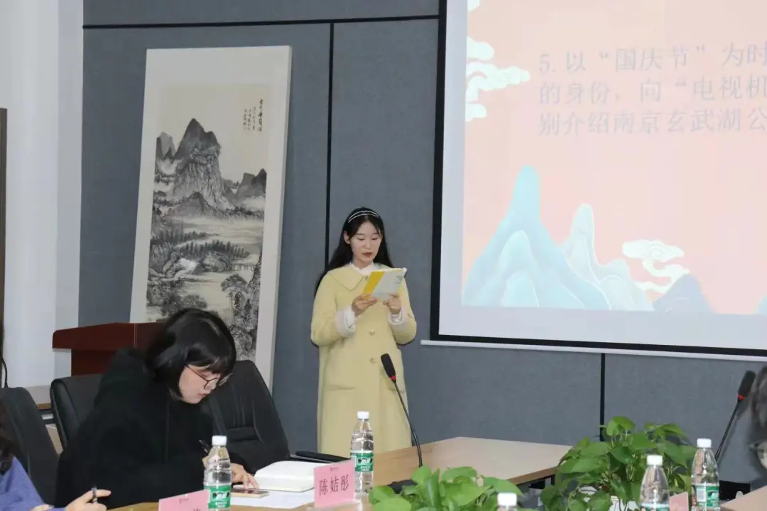 最后章老师点评总结,她着重强调了礼仪对于主持人的重要性,首先,上台要着正装,首先要注意自己的着装打扮,仪容仪表,其次要仪态端正,不要有小动作,站姿要端正得体,最后她指出主持人要有随机应变的能力,主持时要注意自己的音调,并且对大家积极参加大赛表示肯定。