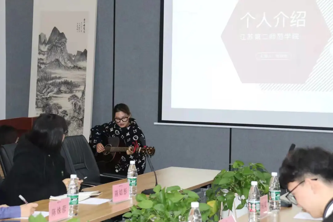 九号选手刘欣怡用生动的PPT向我们介绍了她的家乡,兴趣爱好等,接着自弹自唱,在优美的歌声和乐器声中娓娓道来。十二号选手姚尚为我们展示了她丰富的舞台经历,姿态优雅,落落大方,进行了自信且沉着的自我介绍,为我们带来弹唱歌曲《晴天》。