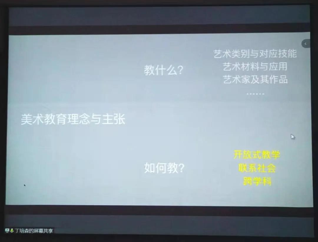讲座伊始,丁培森老师向我们介绍了北美的主要语言环境、学术影响力、学术圈与国际研讨会,让我们更深入地了解到了北美中小学美术教育的环境。他向我们介绍了北美美术教育理念与主张,即教什么和怎么教,通过北美的教育方式和国内中小学美术课堂的比较,引起了在场的每一位同学的深思。