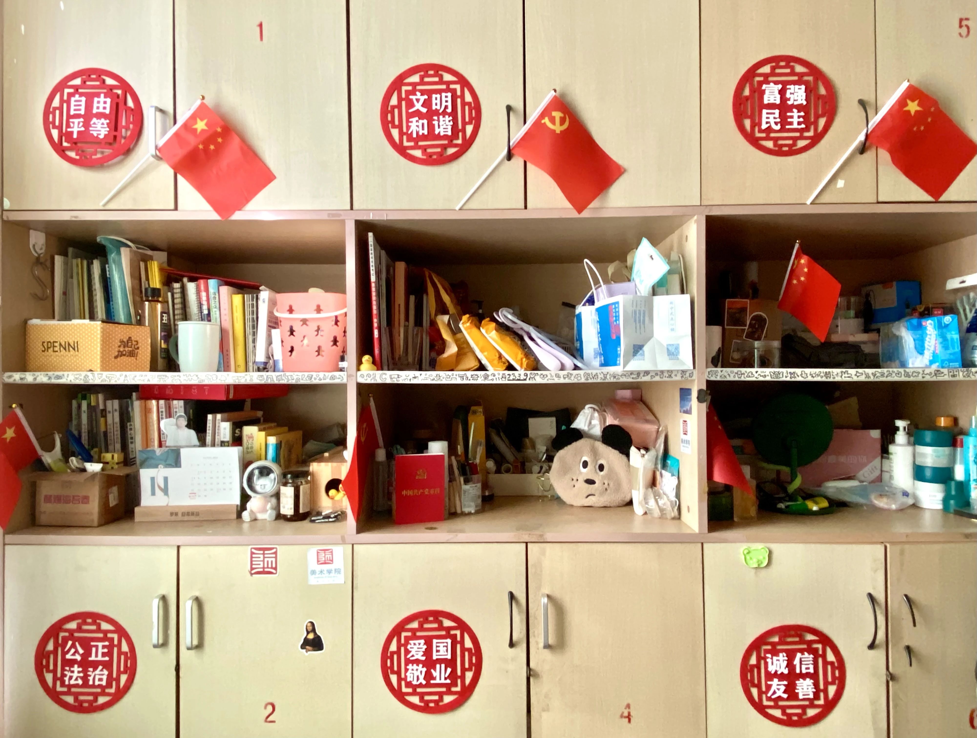 宿舍成员拥护党的领导,具有坚定正确的政治立场,积极追求进步,主动向党组织靠拢;关心国家大事,关心学校发展建设,关心班集体的各项事务,积极参加时事政治理论学习和各项公益活动。