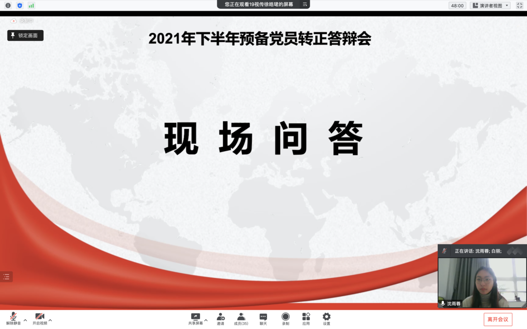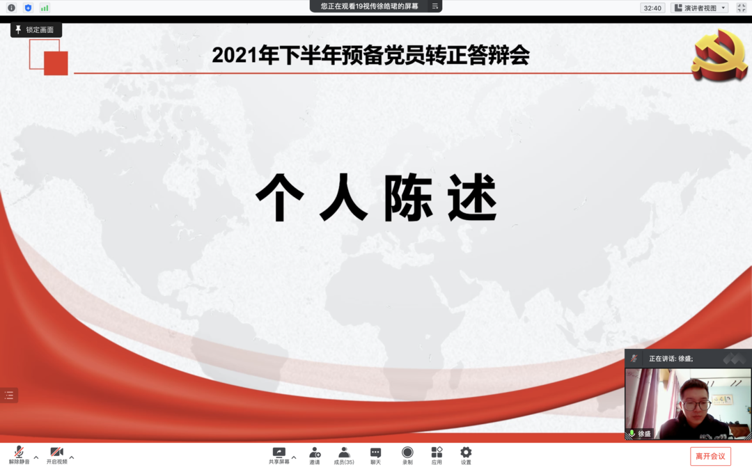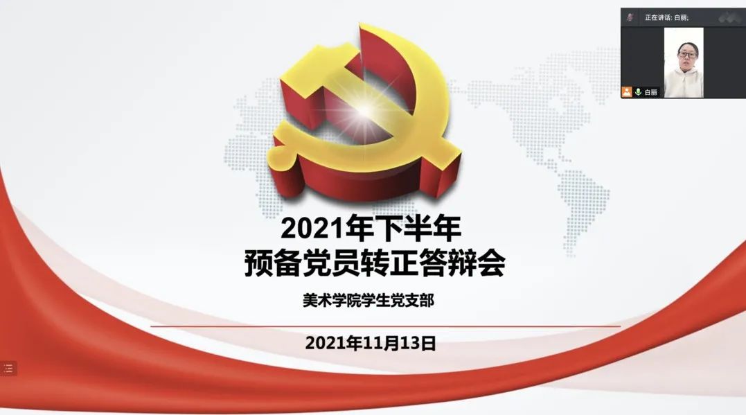 为进一步增强党员发展工作的科学性与公信度,提高党员发展质量,加强拟发展对象和预备党员的教育,根据《关于深入实施大学生党员素质工程的意见》和《江苏省大学生党员发展工作“三投票三公示一答辩”实施办法》等文件精神,美术学院于2021年11月13日10:00举行2021年下半年预备党员转正答辩会,因疫情防控需要,本次大会转为线上进行。