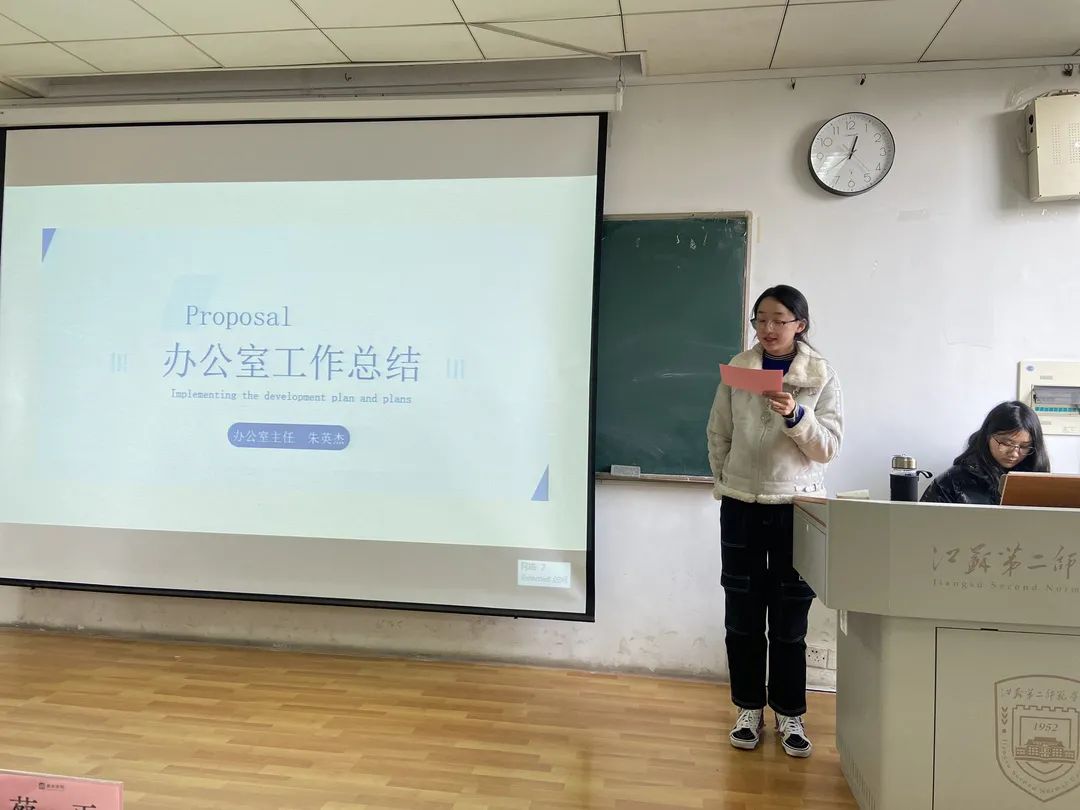 办公室主任朱英杰向我们介绍了三位主干的工作分工、自招新以来办公室完成的每项任务,以及在完成任务的同时暴露出的不足,她希望接下来可以形成高效、积极的部门风貌,切实发挥办公室的作用,不断增强学生会的凝聚力和号召力。