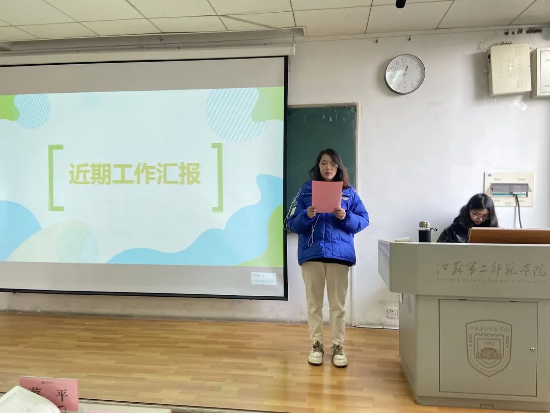 生活纪检部部长王佳卉进行了这半年来的部门工作回顾,同时通过工作实际情况汇报了工作反思,她提出第一学期即将进入尾声,但是不能懈怠,因为还会不断有新的问题出现大家需要一起解决。