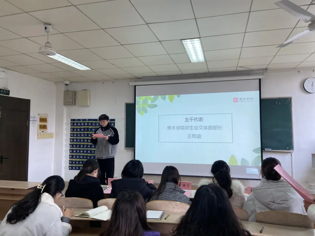 2021年12月22日中午12:30,美术学院第二十二届学生会全体主干会议暨《如何做好一名学生干部》讲座于美术学院北楼304教室举行。美术学院分团委书记章砚文、学生会主席团及全体主干到场参加本次会议,本次大会由学生会办公室副主任秦梓玮主持。