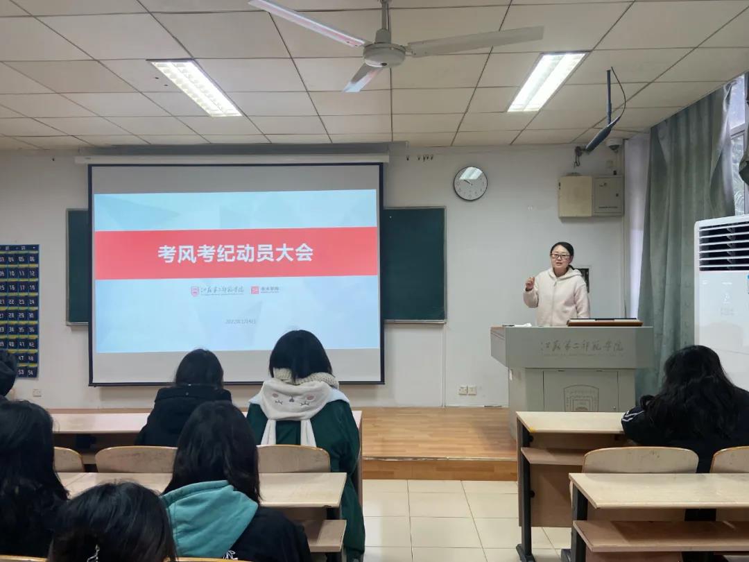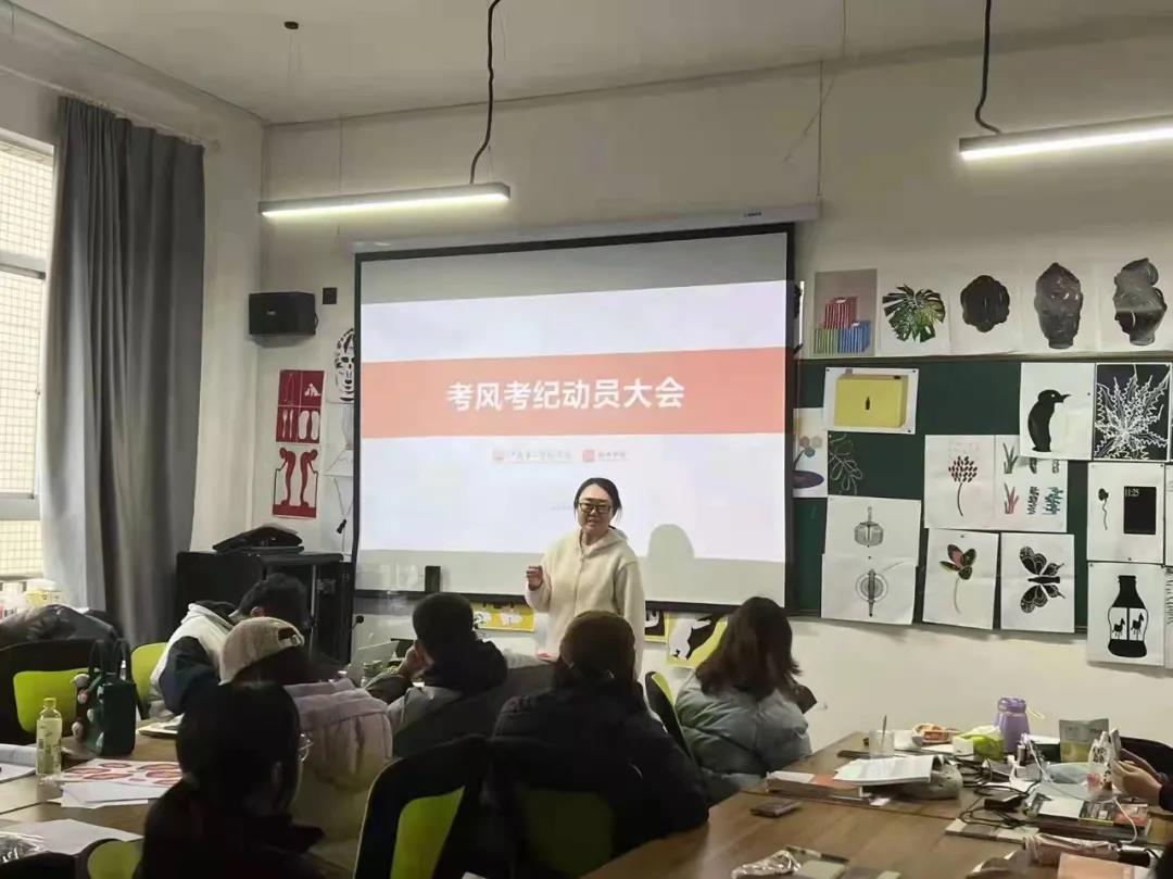 1月4日下午三点半,首先由党总支副书记孙仕荣动员讲话,他强调了诚信考试的重要性。诚实守信是中华民族的优良传统,也是公民的基本道德要求之一。作弊不仅是对自己实力的否定和蔑视,更是对优良学风的亵渎。希望美院学子能够自觉遵守考试纪律,诚实应考,自觉抵制作弊行为,做文明诚信的大学生。