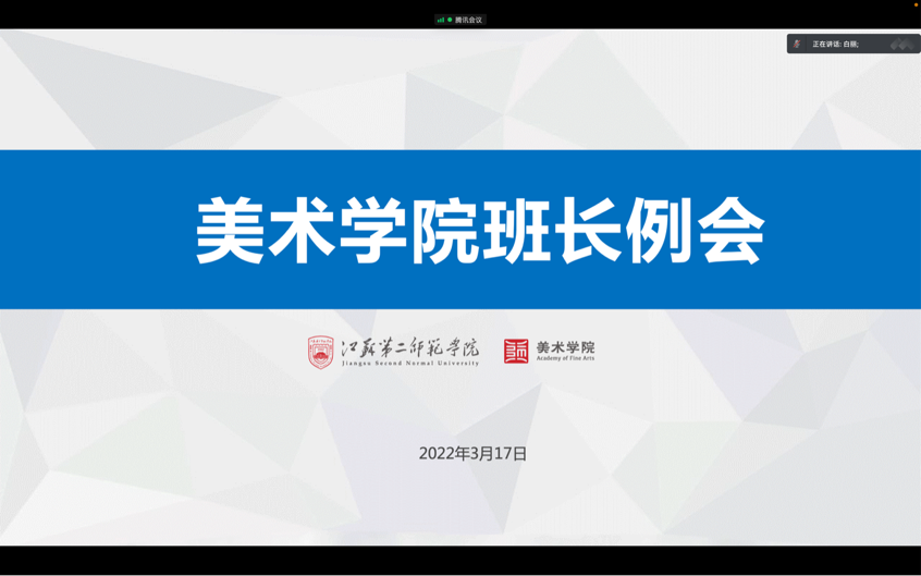 美术学院全体老师们认真负责,同学们积极响应,共同为抗疫贡献力量。学工办主任白丽老师多次召开学生干部例会,要求学生干部在疫情防控期间,坚定不移地同学校保持高度一致,服从学校疫情防控安排,勇于担当,主动作为,一切以学生利益为先,不散布不当言论,不发生损害公共利益行为,确保各项疫情防控精神和要求能够及时传达到班级。同时,时刻关注同学们的思想动态和身心健康等情况,为同学们解决实际困难。
