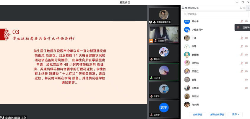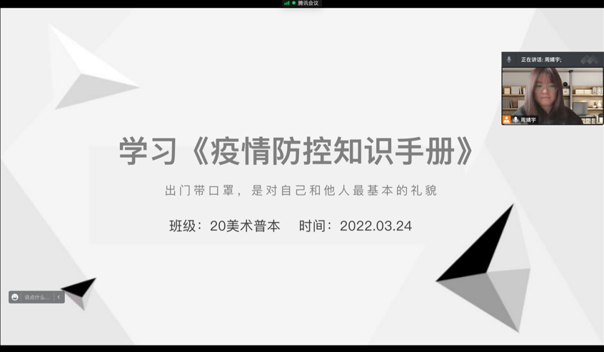 通过此次云班会课,全体学生进一步提高了对新形势下疫情防控的思想认识,增强了社会责任感和自我范防意识。大家一致认为,校园疫情防控绝不能松懈,必须时刻紧绷疫情防控这根弦,筑牢疫情红色堡垒,夯实疫情防控工作。