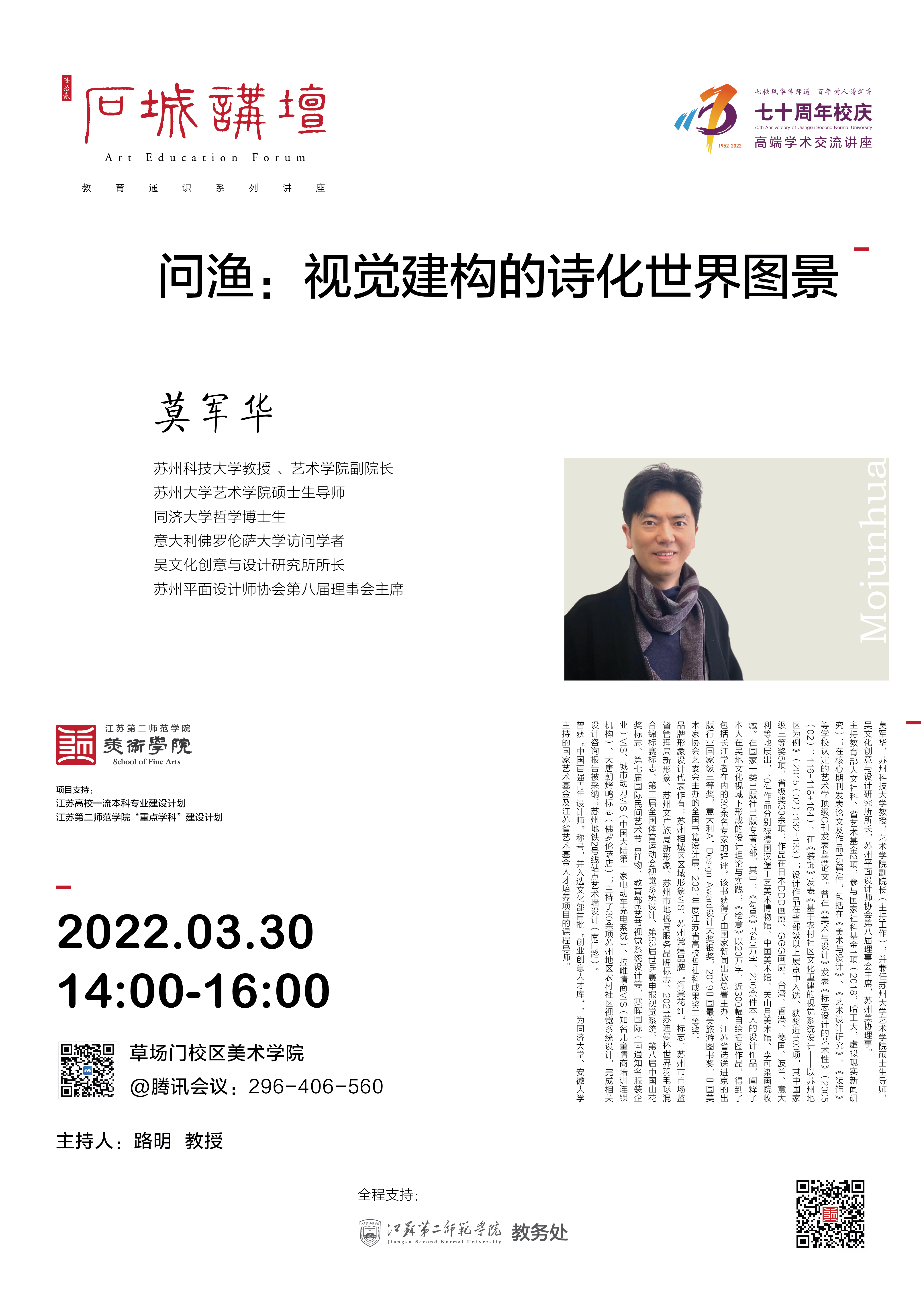 特邀专家:苏州科技大学艺术学院教授、苏州科技大学艺术学院副院长(主持工作)、吴文化创意与设计研究所所长、苏州平面设计师协会第八届理事会主席、硕士生导师 莫军华先生
