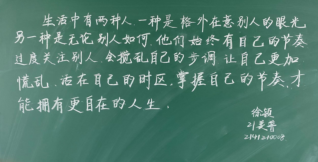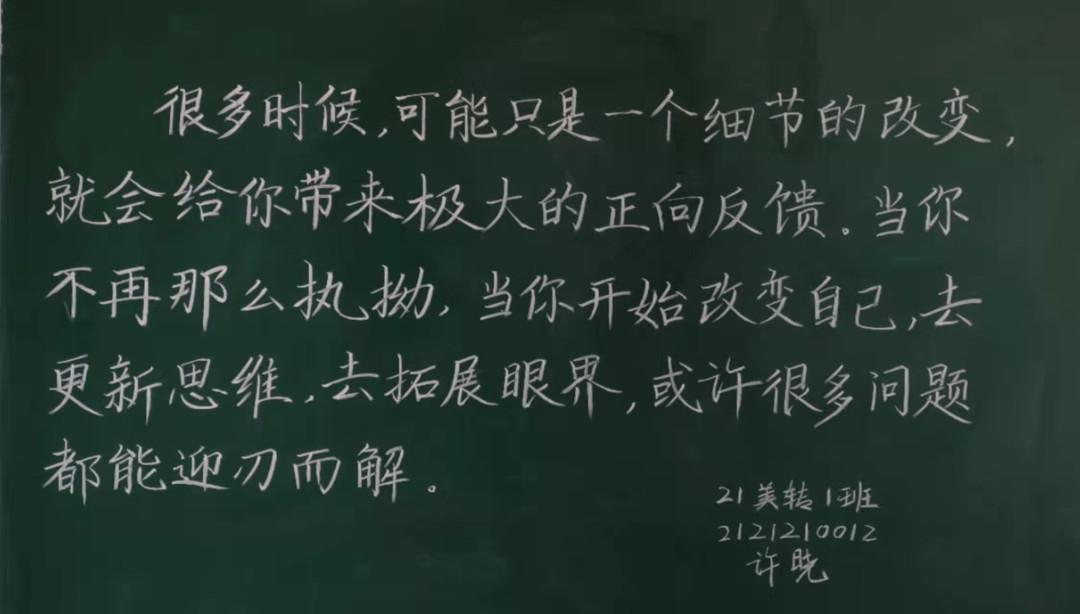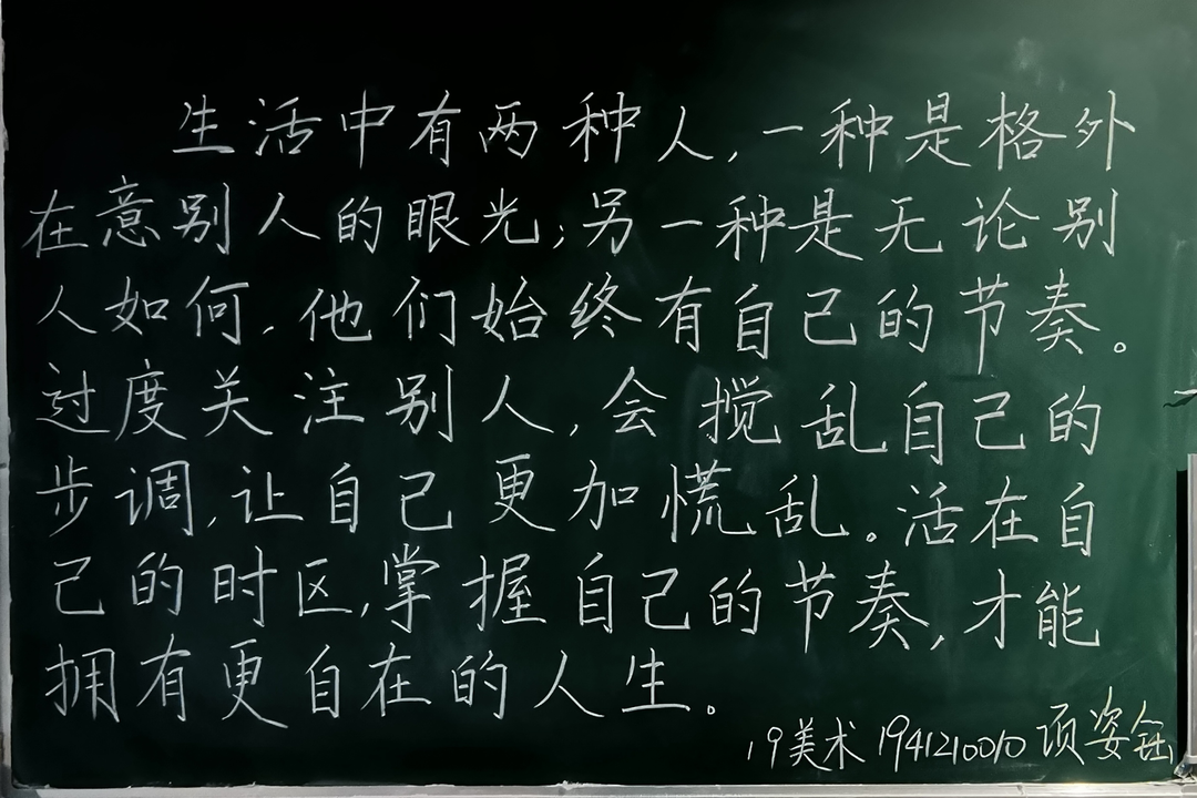 在本次活动中,同学们通过练习粉笔字和简笔画,切实提高了自身的专业基本功,同时增强了人文修养和思政意识,充分认识到了一个优秀的师范生应该兼备系统牢固的学科知识、优秀扎实的教学能力和专业全面的教师技能。本次师范生教师技能培训活动的开展,有效地促进师范生的学习,为今后同学们走进艺术教育工作夯实了教学基础和职业素养。