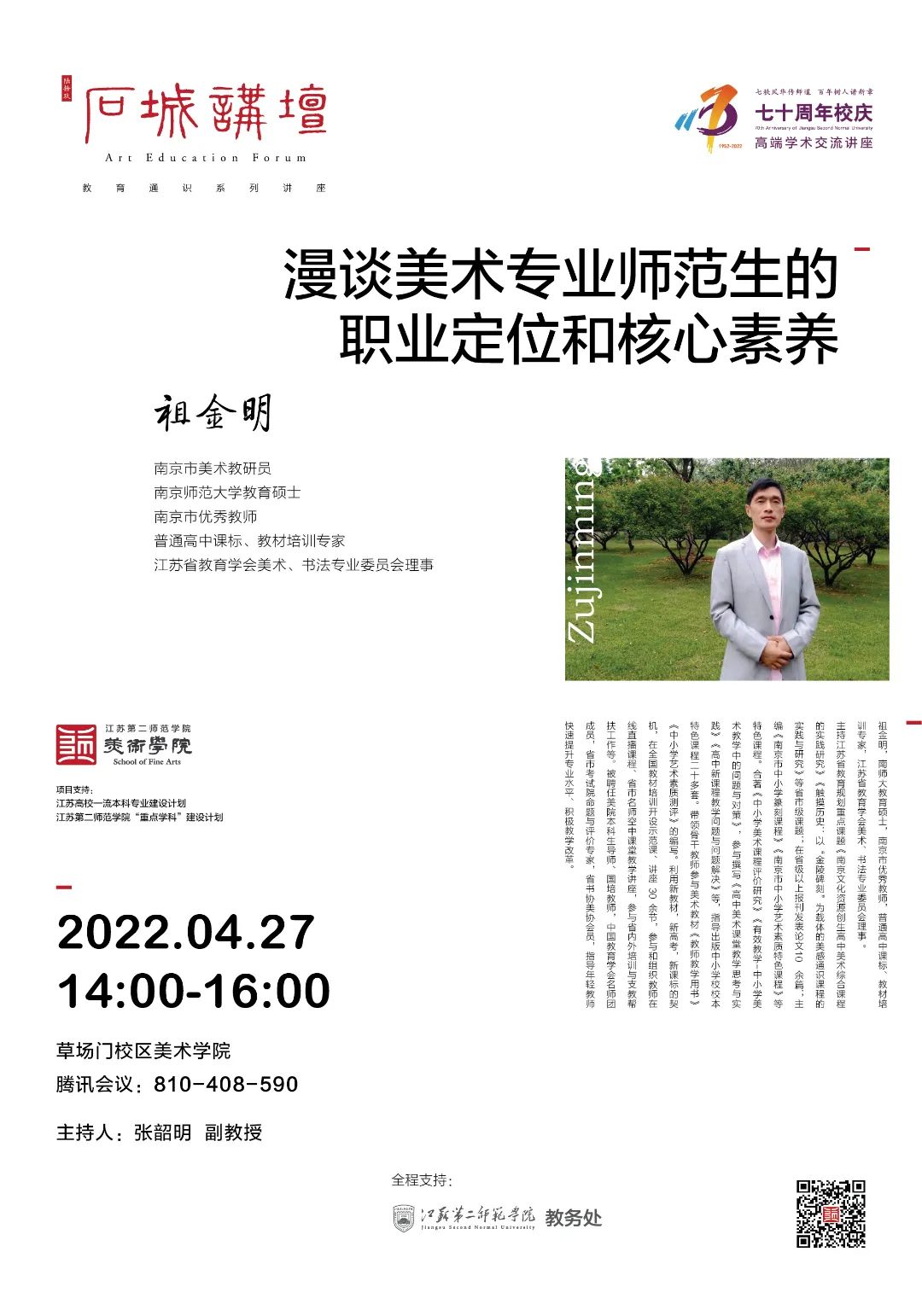 特邀专家:南京市美术教研员,南京师范大学教育硕士,南京市优秀教师,普通高中课标、教材培训专家,江苏省教育学会美术、书法专业委员会理事 祖金明先生