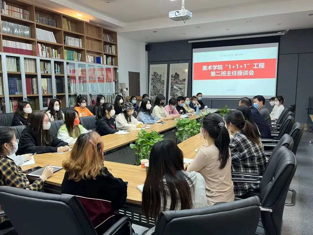 4月28日下午,美术学院在草场门校区图书馆一楼多功能厅举办“1+1+1”助力学生成长工程座谈会,2020级美术学师范定向班第二班主任、副校长祝兴成、美术学院党总支书记丁莹、副书记孙仕荣、辅导员章砚文出席本次会议,2020级美术定向班学生代表参会。