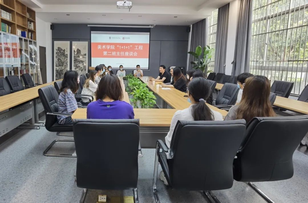 5月20日上午,美术学院多功能会议室举办“1+1+1”助力学生成长工程座谈会,2020级环境设计普本班第二班主任离退休处副处长王建文、美术学院党总支副书记孙仕荣、学工办主任白丽出席本次会议,2020级环境设计普本班全体学生参会。
