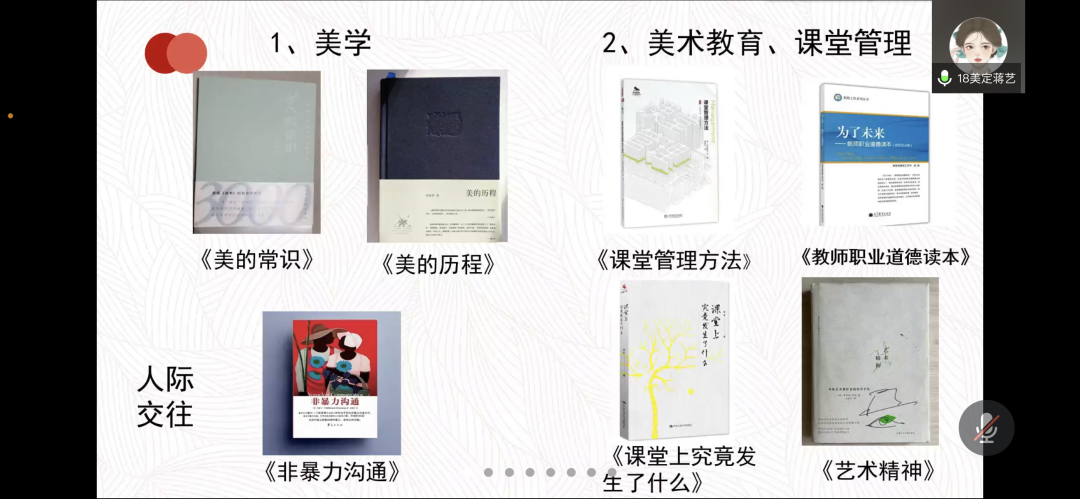 18级美术定向班的党员学生就大学期间的专业学习、参加活动、入党、参展参赛、实习实践、人际交往、教师基本功、考教资等方面的经验与感悟向学弟学妹们进行了分享。有的同学仔细回顾了自己的大学生活,向低年级同学展示了大学四年的收获,以此来鼓励同学们早日制定生涯规划,珍惜时光、不负韶华;有的同学结合自身备考教资的经验,围绕教资各科考试分数占比、答题技巧、知识点框架向大家进行详细讲解,鼓励同学们唯有勤奋、坚持到底、才有收获;有的同学分享了自己如何适应实习岗位、熟悉工作流程,如何与学生沟通、上好美术课的宝贵经验,告诉低年级同学做事必须要积极主动,在校期间需要积累起足够的知识和技能才能应对将来的工作,成功永远属于有准备的人。