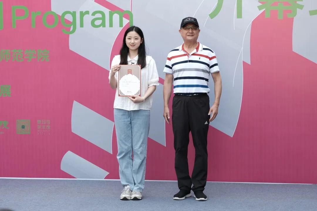 江苏省美术家协会雕塑艺委会副主任兼秘书长、南京师范大学美术学院教授陈亮为黄显之艺术奖学金三等奖获得者颁奖