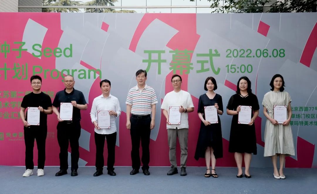 2022年6月8日下午3点,“2022种子计划——江苏第二师范学院美术学院毕业汇报展”在草场门校区蒙玛特美术馆开幕。江苏第二师范学院党委书记王仁雷、党委常委、副校长祝兴成、党委常委、宣传部部长卜玉平、南京艺术学院科研处处长吕少卿、南京艺术学院艺术教育高等研究院院长顾平、江苏省美术家协会雕塑艺委会副主任兼秘书长、南京师范大学美术学院教授陈亮、蒙玛特(中国)总经理张啟鑫、蒙玛特(中国)副总经理马先明、江苏第二师范学院党办校办主任张其飞、学工处处长杨思贤、教务处副处长王玉玺、美术学院党总支书记丁莹、副院长陶金鸿、党总支副书记孙仕荣与美术学院全体教师一同出席开幕式,同时还特别邀请到的美术学院老教授、奖学金捐赠人、校教学督导黄载文。本次活动开幕式由江苏第二师范学院美术学院院长路明主持。
