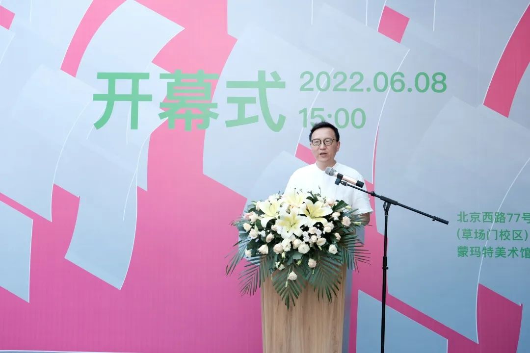 首先,路明向大家介绍了本次展览活动的相关情况。美术学院坚持以培养“人文情怀和社会担当的艺术教育践行者”为己任,为党育人,为国储才。本次展览是美术学院三个专业的艺术教育成果的集中展示,共展出120件作品,内容丰富,形式多元,彰显了美院新青年的活力与理想,也生动诠释了美院毕业生对艺术的追求。