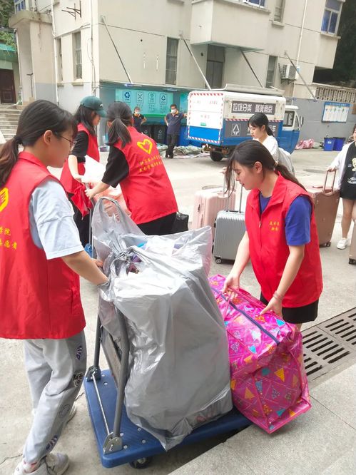 “我的行李太重了,能帮我搬一下吗?”“能帮我把行李运到校门口吗?”——“学长学姐,没问题”是志愿者们统一的回答。通过一件件细心查找、一包包精心整理、一声声关切询问、一次次往返搬运,志愿者们把对毕业生的关爱和祝福融在行动中、装进包裹里、放在温暖的话语中。直至毕业生们乘车离校,志愿者才停止匆忙的脚步。