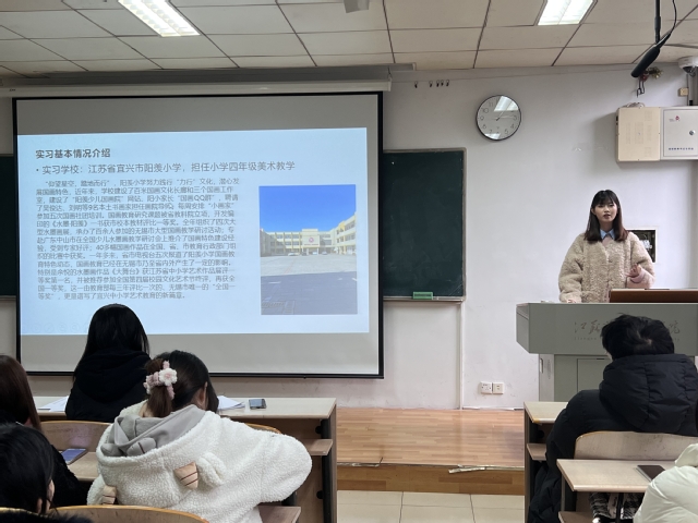 会上,白丽首先向全体同学解读乡村教师定向培养有关政策,介绍师范定向生培养跟踪机制以及就业政策。2019级美术学师范定向班七名来自南通、盐城、苏州、南京、无锡、扬州等地的优秀学生就为期一学期的实习情况进行了总结汇报。同时,结合大学期间的专业学习、参展参赛、社会实践、人际交往、教师基本功、教师资格证备考等方面的经验与感悟向低年级同学进行了分享。以此来鼓励同学们早日制定生涯规划,在校期间积累起足够的知识和技能以应对将来的实习和工作,珍惜时光、不负韶华。