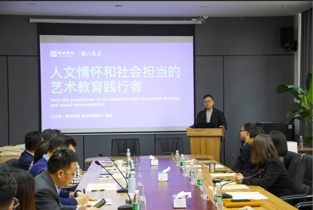 2023年3月15日下午,江苏第二师范学院美术学院在多功能会议厅举办大学生实习、实践基地授牌暨校外导师聘任仪式。本次会议由美术学院院长路明教授主持。