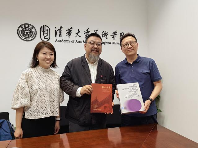5月26日下午,考察活动的第一站为清华大学美术学院。首先访问了设计学科权威期刊《装饰》(C刊)的编辑部,与期刊主编、清华大学美术学院副院长方晓风教授进行了会谈,双方就学术支持、论文发表等议题进行了深度交流。方晓风教授热烈欢迎路明院长一行,对江苏第二师范学院美术学院充满活力的专业氛围给予了充分肯定,并高度评价二师美院近年来师生取得的专业成果。路明院长感谢方晓风教授为我校美院给予的学术支持,介绍了近年来美院承担的艺术教育论坛、专业作品展览等学术活动。方晓风教授作为学术点评专家曾参与2022年我院举办的第一届艺术教育创新发展青年学者论坛,此次会谈路院长邀请方晓风教授近期再次来我校做讲座。编辑部王小茉副教授参与讨论,着重介绍了期刊论文的发表要求、选题方向等信息,为各位青年教师指点迷津。《装饰》是我国艺术与设计界普遍关注的大型综合性学术刊物,办刊宗旨“立足当代、关注本土”,与时俱进地反映了中国本土设计的真实面貌,既是研究中国现代设计不可或缺的重要文献,也是本土理论的重要阵地。我校美院多位教师曾在《装饰》发表过高质量论文,此次交流访问各位设计学科教师就设计学科发展方向、青年教师研究方向等学术议题同《装饰》编辑部展开了进一步探讨,加深了我校美院与国内顶级期刊的联系,是提升美院教师学术水平的重要契机。
