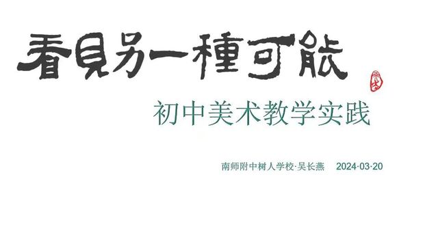 2024年3月20日下午,南京师范大学附属中学树人学校美术教研组组长,中学高级教师,第十届“南京市学科教学带头人”,南京市先进教研组组长,江苏省青年教师基本功大赛一等奖、全国中小学信息技术创新与实践活动决赛一等奖、南京市精品课程一等奖获得者、南京市十佳社团优秀指导教师,江苏省美协会员、江苏省徐悲鸿研究会会员吴长燕老师应邀在江苏第二师范学院草场门校区教育技术楼一楼报告厅作了题为《看见另一种可能——初中美术教学实践分享》的讲座。此次讲座由美术学院美术教育教师发展中心主任张韶明老师主持,美术学院美术学定向班、部分美术学普本班、美术学转本班同学参加了学习。