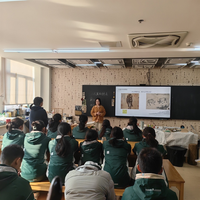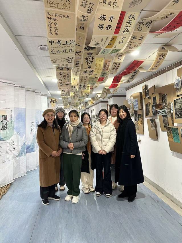 2024年12月18日上午,美术学院党总支书记王玲玲与班主任孙妮娜到南京师范大学附属中学树人学校看望21级美术普本班实习的四位同学,听取了朱冰彦与葛芸嘉给初一学生上的《中国雕塑艺术》《五牛图》两节汇报课,课后两位老师分别与她们进行了交流,肯定了她们的优点,分析了存在的不足,提出了改进的再设计。之后与实习指导老师进行座谈交流,吴长燕老师肯定了实习同学扎实的专业功底和勤奋、踏实的学习态度。给我们在师范教育与培养过程中提出了建议,要注重学生课堂教学的整体设计,课堂教学管理的艺术,要了解初中生的心理特点。四位实习同学表示在树人学校实习收获良多,拓宽了眼界,树人学校的导师十分关心她们,给予了他们成长的历练,十分珍惜实习的经历,明确了自己今后的努力方向。