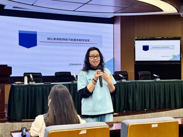 2025年5月7日下午,正高级教师、教育部首届全国中小学美育教学指导专业委员会委员、国标义务教育小学《艺术·美术》苏少版教材主编、江苏省美育教学指导委员会委员、江苏省美术家协会理事、江苏省教育科学研究院中小学美术教研员丁悦老师,应邀在江苏第二师范学院草场门校区现代教育技术楼二楼报告厅作了题为《核心素养导向下的美术教学变革》的讲座。此次讲座由美术学院基础美术教育研究所所长张韶明老师主持,美术学院美术学定向班、美术学普本班和美术学转本班同学参加了讲座学习。