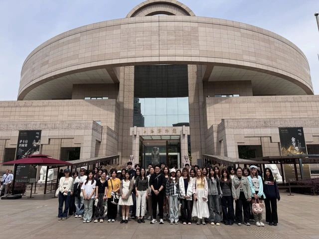 为提升人才培养质量,创新人才培养路径,开拓学生专业视野,2025年4月17日,美术学院2022、2023和2024级视觉传达设计专业的同学们在李岩老师、裴凌暄老师、章砚文老师和邢廷伟老师的带领下,前往上海开展“数智化与中国设计”系列研学活动,本次上海站的研学活动,主要的参观学习地点是上海博物馆、上海当代艺术博物馆。