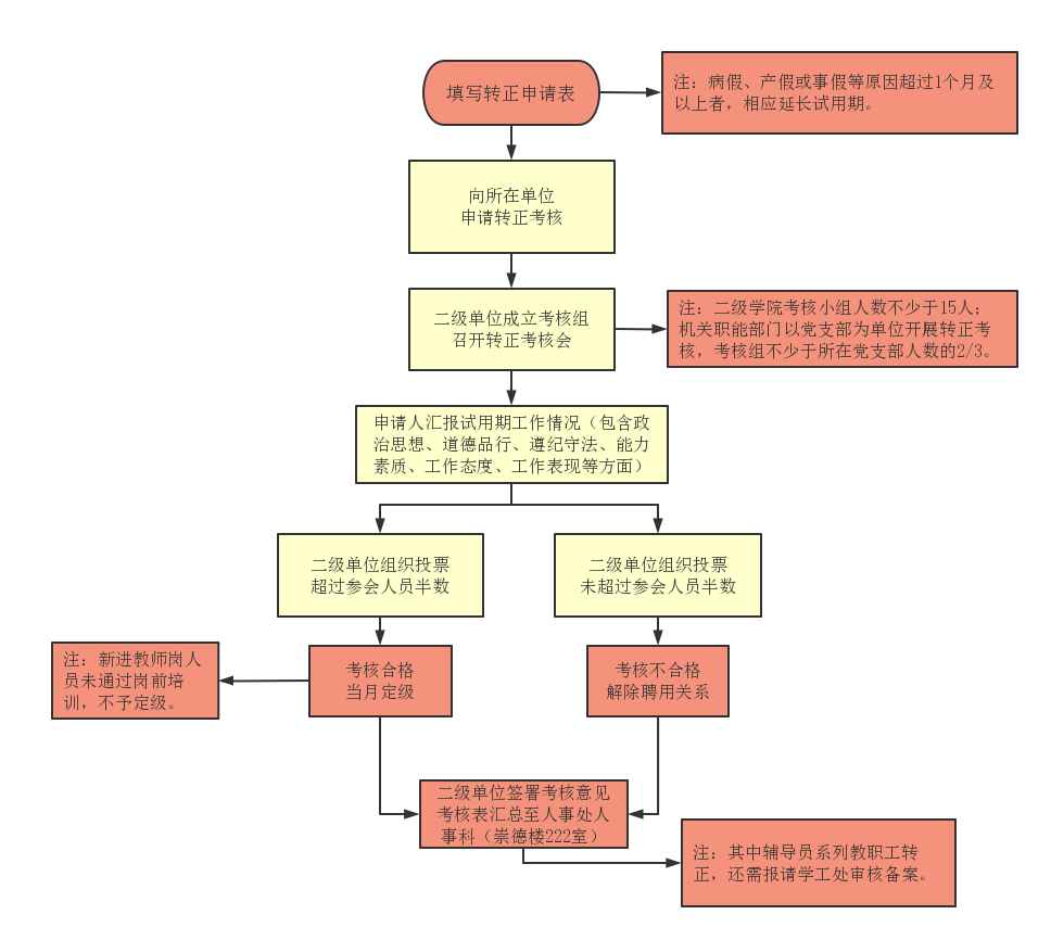 江苏第二师范学院教职工转正考核流程图