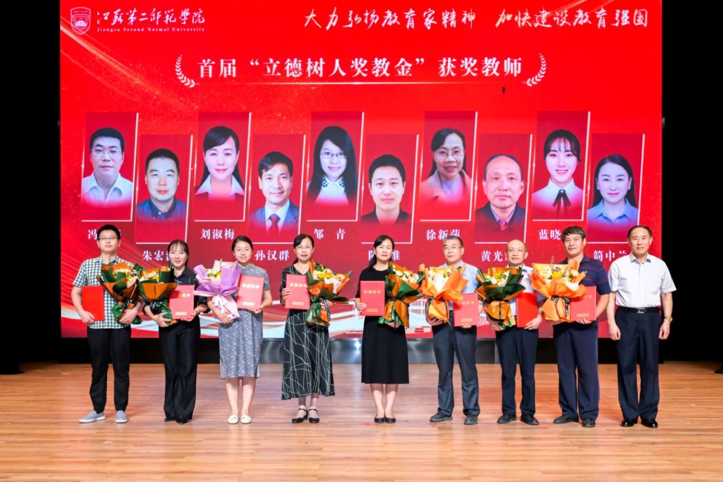 会上还宣读了江苏第二师范学院首届“立德树人奖教金”获得者名单。江苏省教育基金会理事长步锦昆为“立德树人奖教金”获得者颁发荣誉证书。