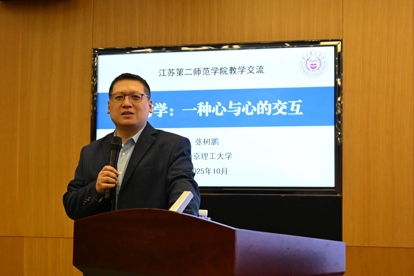 开班式结束后,南京理工大学化学与化工学院副院长张树鹏教授为全体新教师作了本科教育教学审核评估专题报告。报告由校教师教学发展中心副主任黄晓波主持。张树鹏教授聚焦于“教案设计”这一核心主题,结合审核评估标准,从教学痛点、创新设计、教学反思及教学效果四个方面系统阐释了如何构建一套科学、规范且高效的教学方案,为全体新教师提升教学基本功、迎接审核评估提供了清晰的实践路径。
