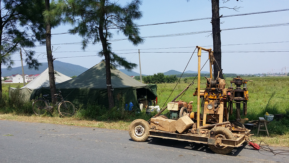 我院一行还实地查看了新校区拆迁现场及勘探现场,并与勘探负责人一起现场查看了勘探布点情况。