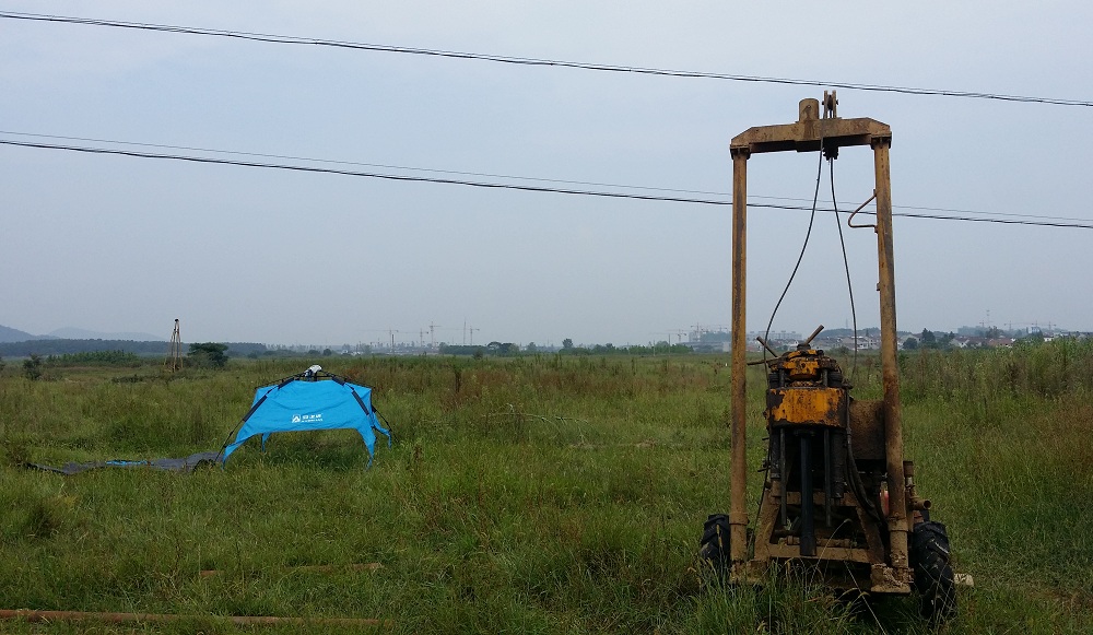 最后,基建管理处一行实地查看了新校区勘探现场,向勘探单位了解勘探进展情况,勘探施工单位人员介绍,今天上午已经开始了河塘的勘探。
