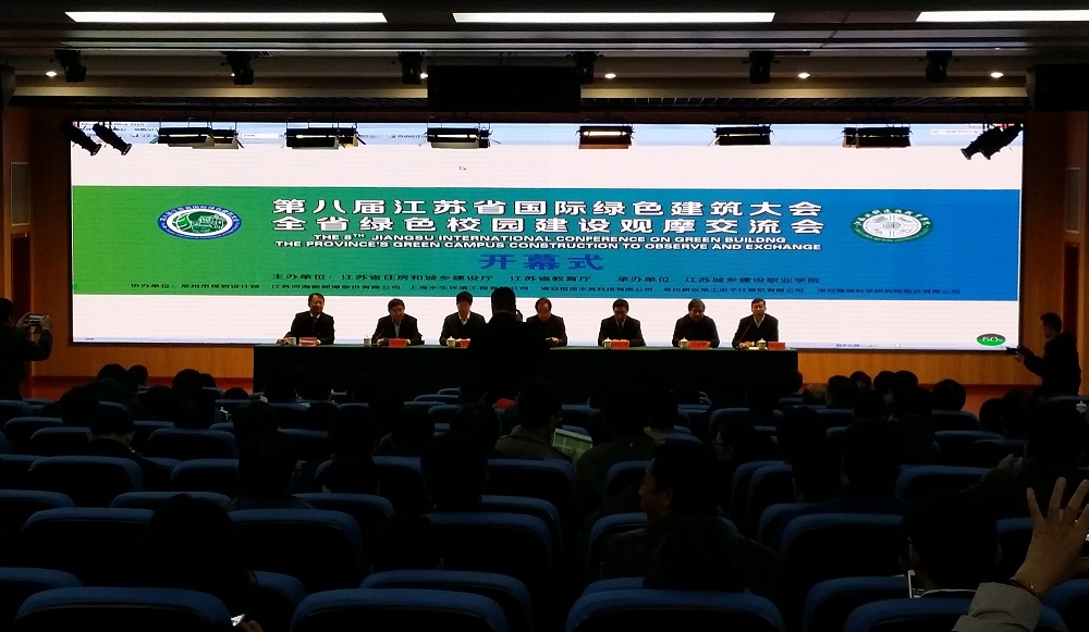 1125日,第八届江苏省国际绿色建筑大会暨江苏省绿色校园建设观摩交流会在江苏城乡建设职业学院隆重举行。大会开幕式由省住房和城乡建设厅科技处处长唐宏彬主持。国家住房和城乡建设部建筑节能与科技司副司长韩爱兴,省住房和城乡建设厅党组书记顾小平、省住房和城乡建设厅副厅长宋如亚,省教育厅副厅长倪道潜,国家住房和城乡建设部科技发展促进中心副主任梁俊强,省住房和城乡建设厅人教处处长章小刚,以及来自全省13个省辖市建设局副局长、教育局副局长,全省高校基建管理干部等有关领导、专家出席大会。