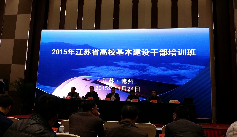 1124日,2015年江苏省高校基本建设干部培训班在常州市举行。苏州大学副校长、江苏省教育基本建设学会副会长杨一心,江苏省委教育工委纪检副书记、江苏省教育厅监察室主任荆和平,江苏省教育厅发展规划处副处长李国荣,江苏省教育建筑设计研究院院长、江苏省教育基本建设学会副会长、秘书长王珏等出席培训班开班仪式。