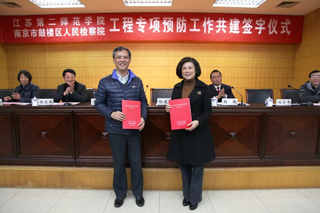 党委副书记、副院长程建军就共建工作发表讲话。他指出,长期以来,南京市鼓楼区人民检察院对我校事业发展和廉政建设给予了关心支持和热情指导,双方在预防职务犯罪、开展校检共建等方面开展了深度合作、结下了深厚情谊。在溧水校区建设项目即将全面开工的重要时刻,两单位就工程专项预防工作签署共建协议,这既是对上级主管部门加强工程专项监督和廉政建设各项要求的积极呼应和认真落实,也是鼓楼区人民检察院发挥专业优势、关心高校发展的亲民作风的充分体现,必将为我校校区工程建设的顺利进行提供切实有效的保障。他诚恳地希望在校区建设过程中,能得到鼓楼区人民检察院进一步的关心指导。