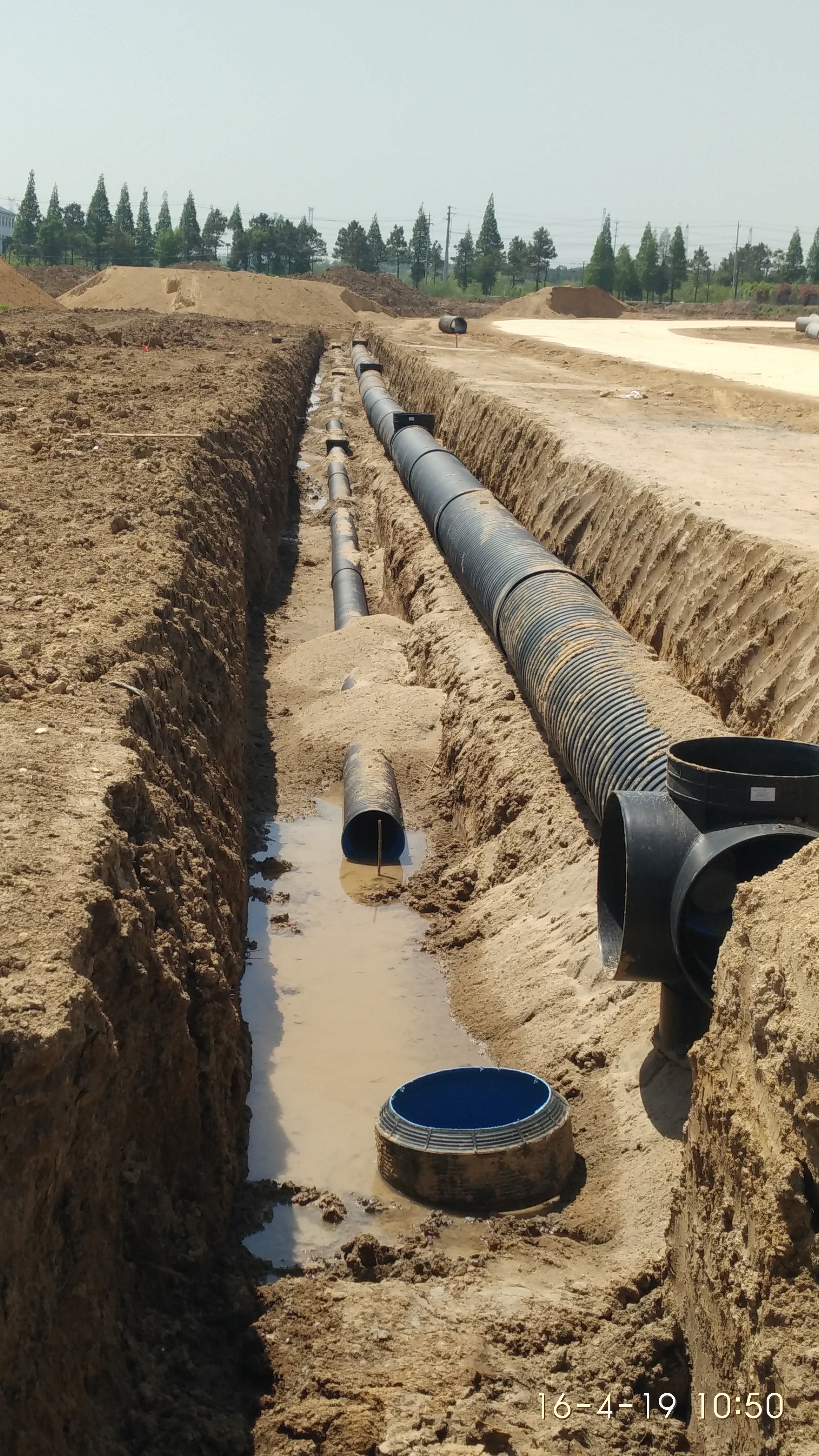 2016.04.19主环道路完成路基施工,部分雨污水管开始铺设