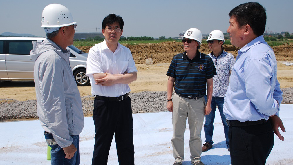 6月17日,院长王仁雷、副院长潘文一行至溧水校区,检查指导新校区建设工作。