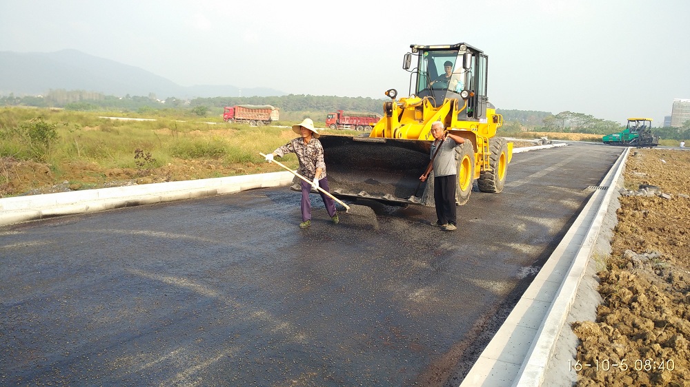 2016.10.05校区道路第一层8CM沥青层开始铺设