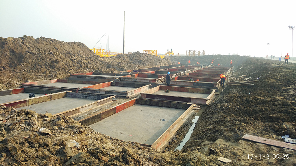 2017.01.03西侧施工道路完成,6-7号学生宿舍组团地基开挖、浇筑、制模