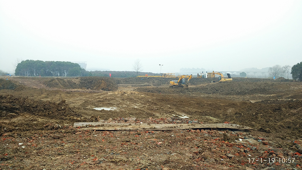 2017.01.19学生宿舍1组团1-1场地平整压实,1-2完成垫层浇筑,1-3土方回填平整