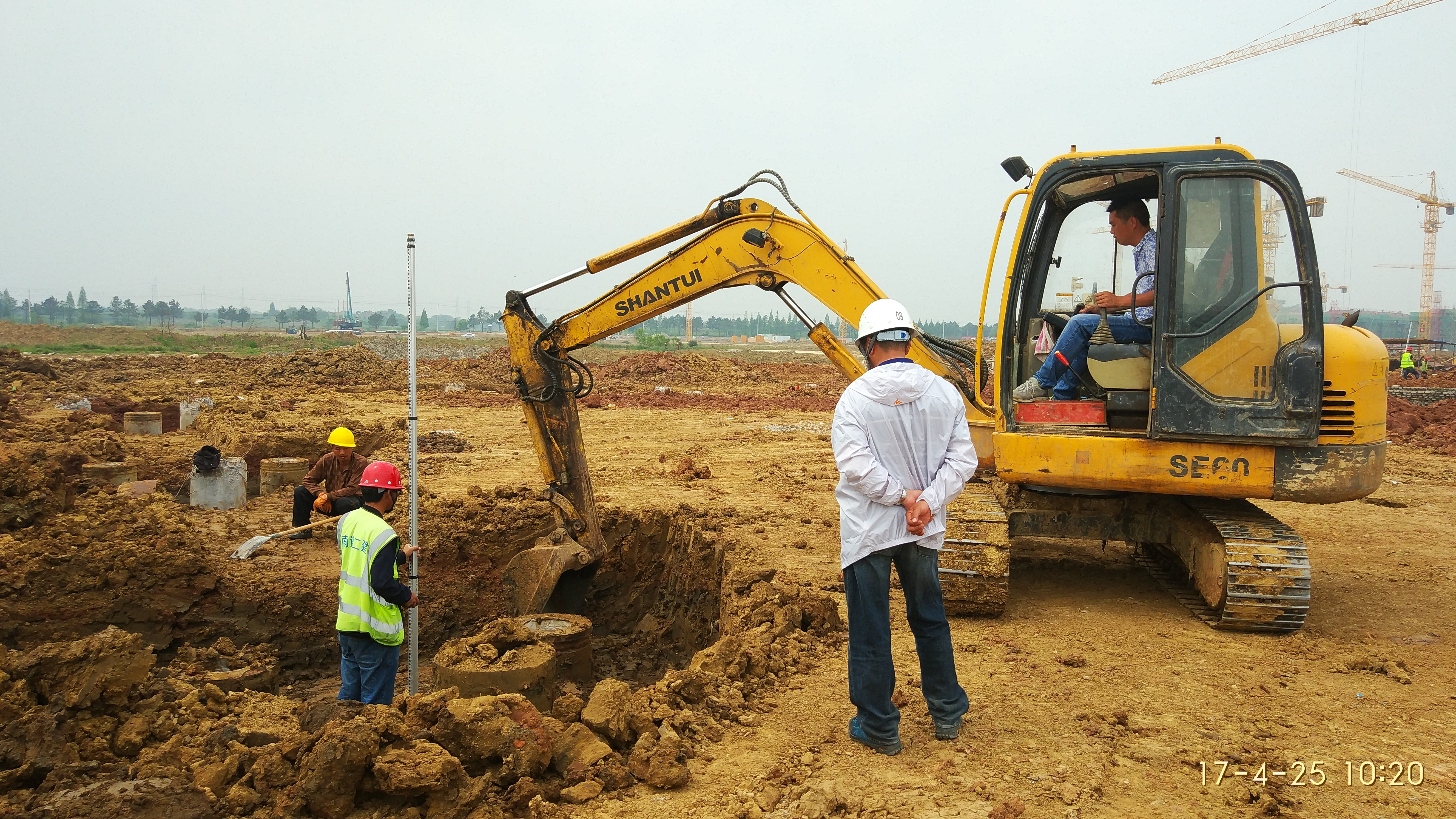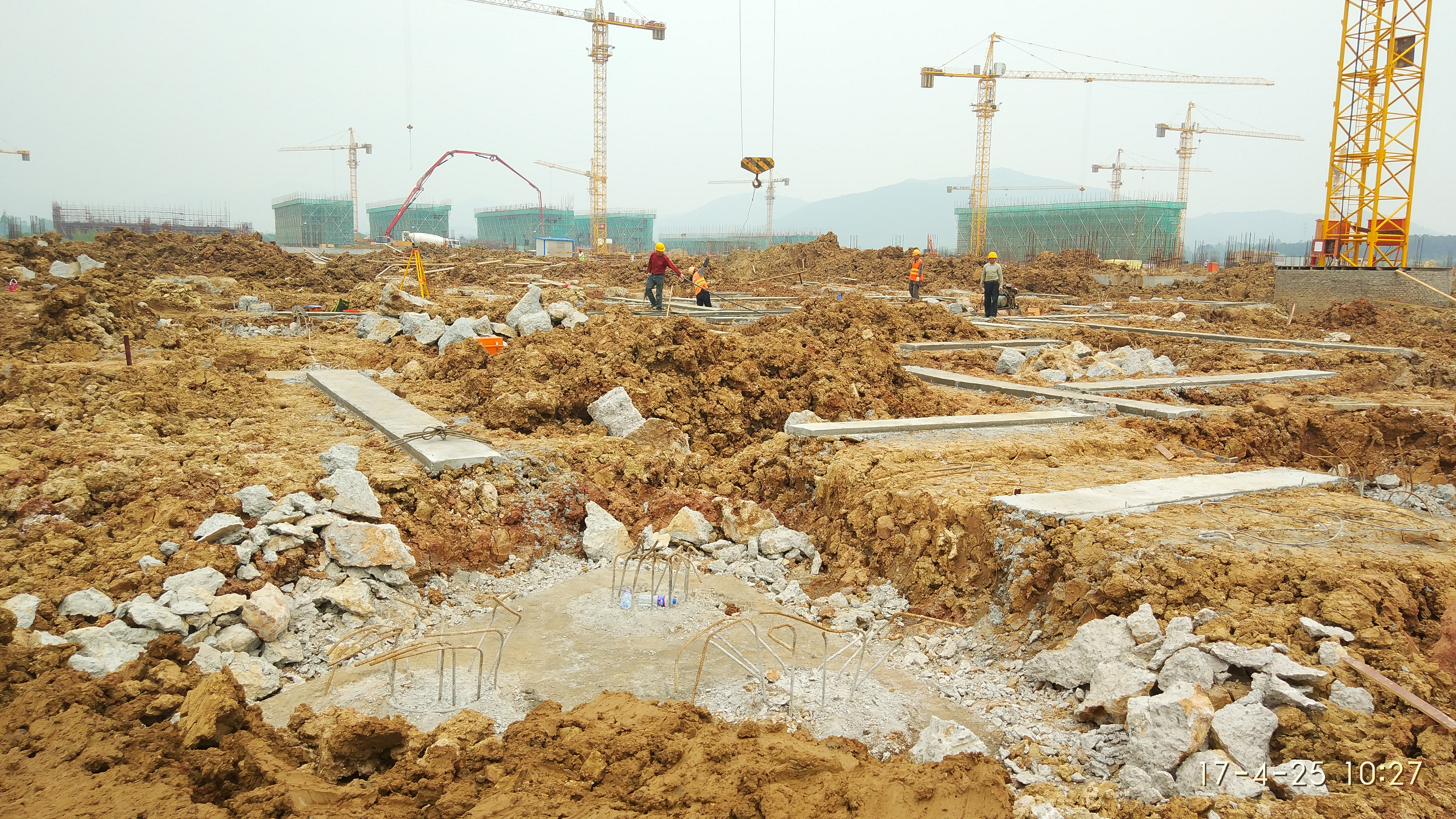 2017.04.25文科楼、理科楼、图文信息中心进行基础桩头开挖、垫层浇筑