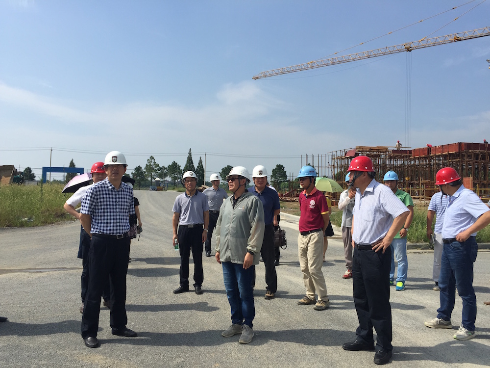 8月11日上午,党委书记王仁雷、副校长潘文、纪委书记陈金如赴溧水校区施工现场,视察建设进展情况,并慰问一线工作人员,党办、纪委、基建处、审计处、监理单位、施工单位相关负责人陪同视察。