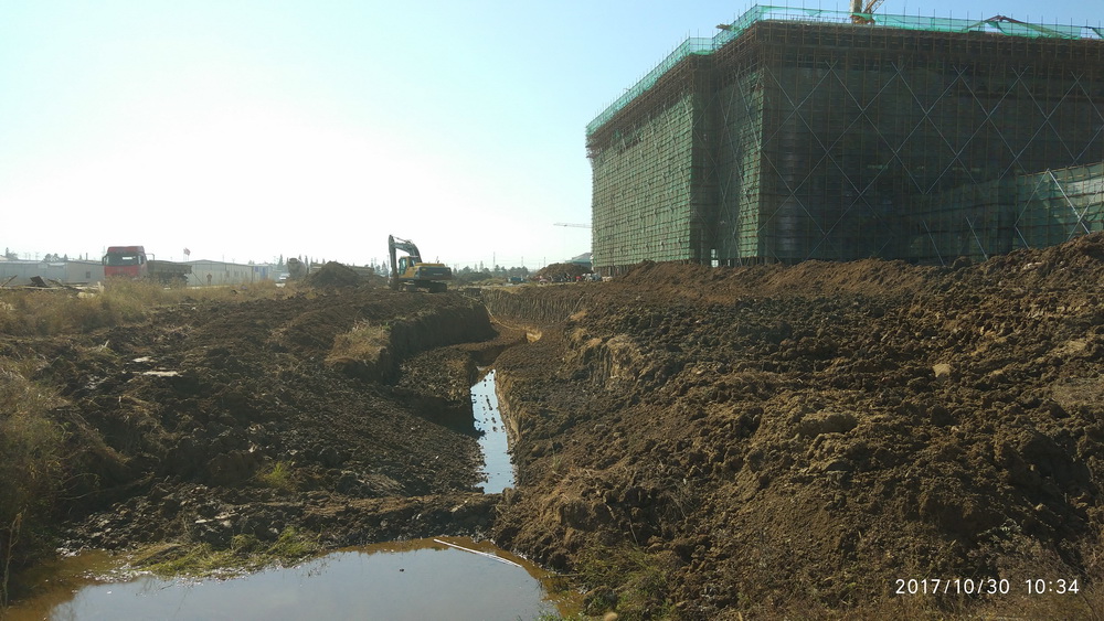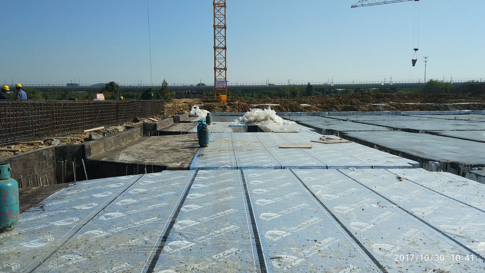 2017.10.30体育馆完成防水卷材铺装,景观水系开始开挖