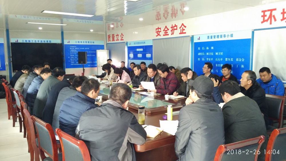 为有效推进溧水校区建设,2018年2月26日下午,大年正月十一,监理单位组织召开新年第一次工地监理例会,落实节后工人进场、恢复施工以及分包单位进场事宜。基建处、审计处、财务处、跟踪审计、监理、总包、市政、景观、装修、运动场、幕墙、空调、电梯等单位负责人参会,会议由总监刘学兵主持。