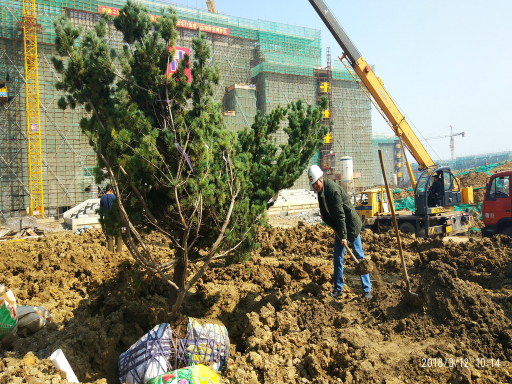 3月10日,江宁城建园林公司会同学校绿化专业人员,现场确定移植方案,并现场进行花坛破除,树根捆扎工作。
