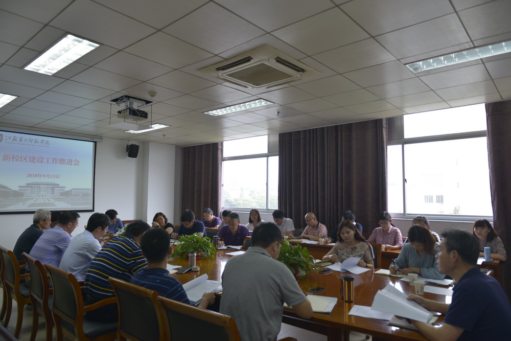 会议首先由基建处处长章长志汇报新校区建设进展情况,并介绍了校区建设需要其他职能部门配合完成的工作以及目前的最新进度情况。