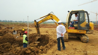 2017.04.25文科楼、理科楼、图文信息中心进行基础桩头开挖、垫层...