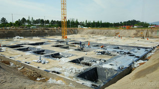 2017.05.28图书馆承台基础梁浇筑完成,青年教师公寓桩基施工完成